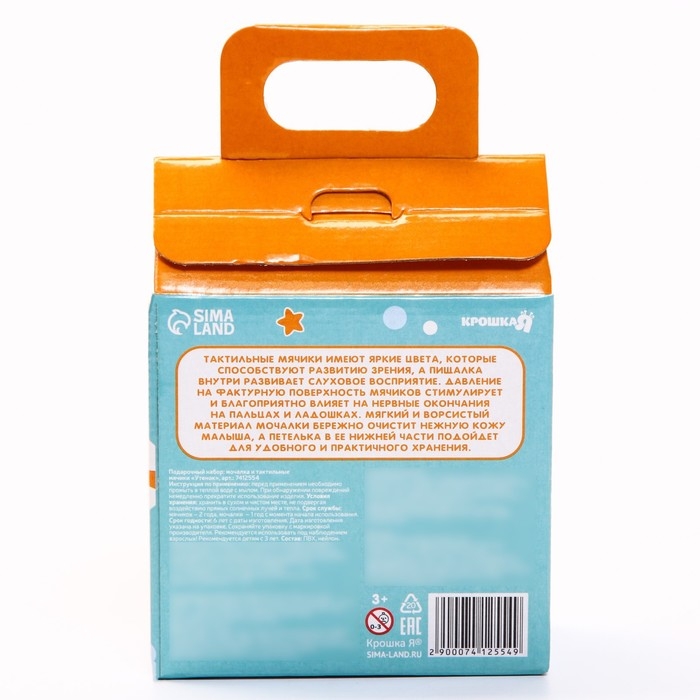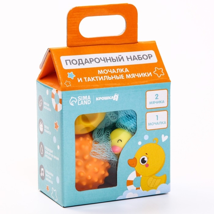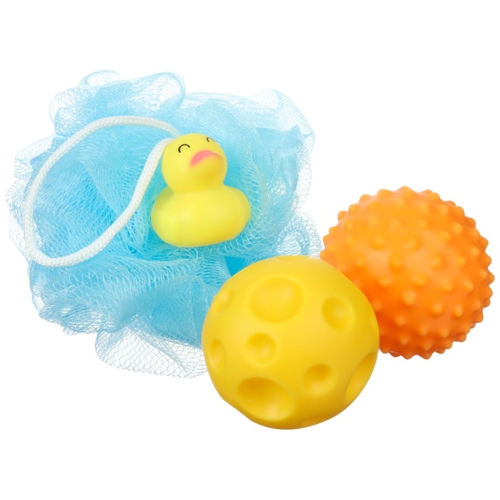 Набор для ванны «Утенок», мочалка с игрушкой, 2 тактильных мячика, Крошка Я
