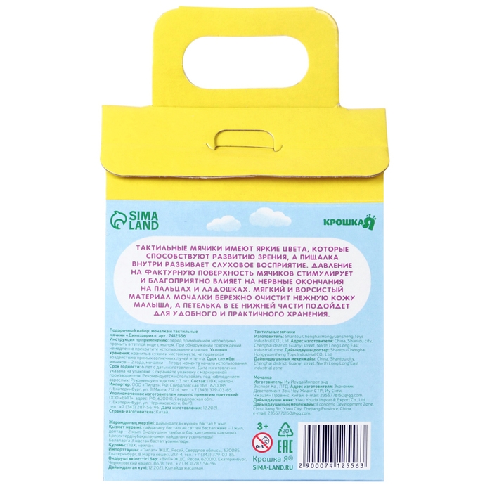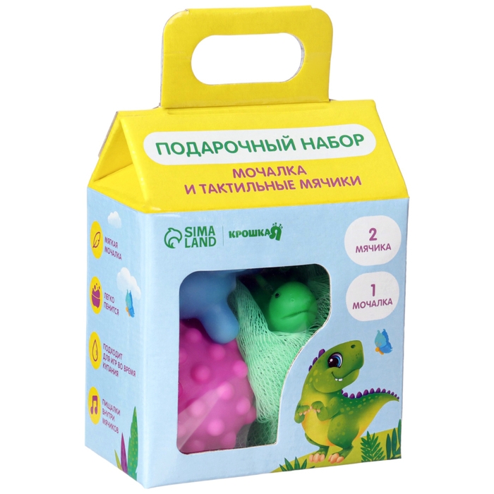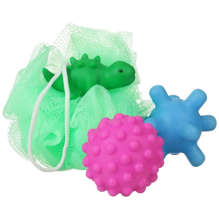 Набор для ванны «Динозавтрик», мочалка с игрушкой, 2 тактильных мячика, Крошка Я