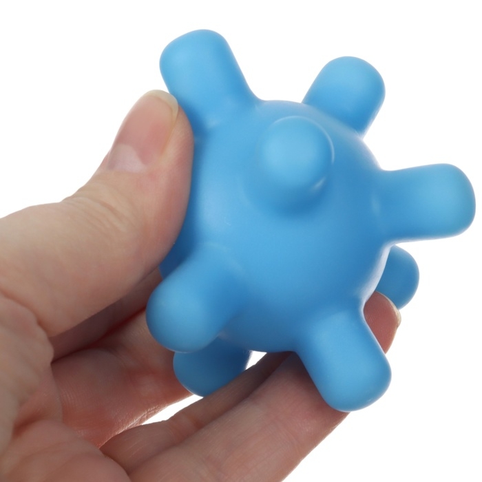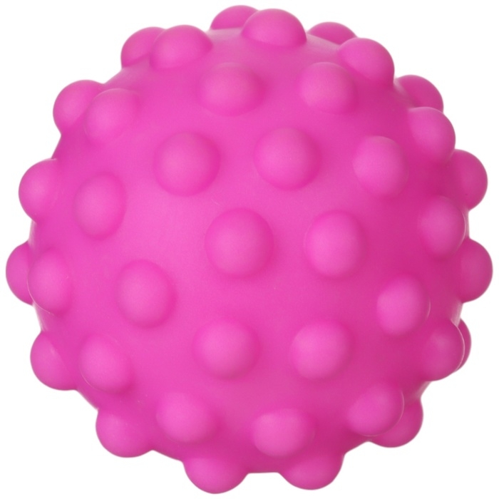 Мячики с рельефной массажной поверхностью способствуют развитию мелкой моторики и тактильных ощущений. Давление на фактурную поверхность мячиков стимулирует и благоприятно воздействует на нервные окончания, ответственные за большинство процессов в организме. Шарики имеют яркие цвета, которые способствуют развитию зрения, а пищалка внутри развивает слуховое восприятие.