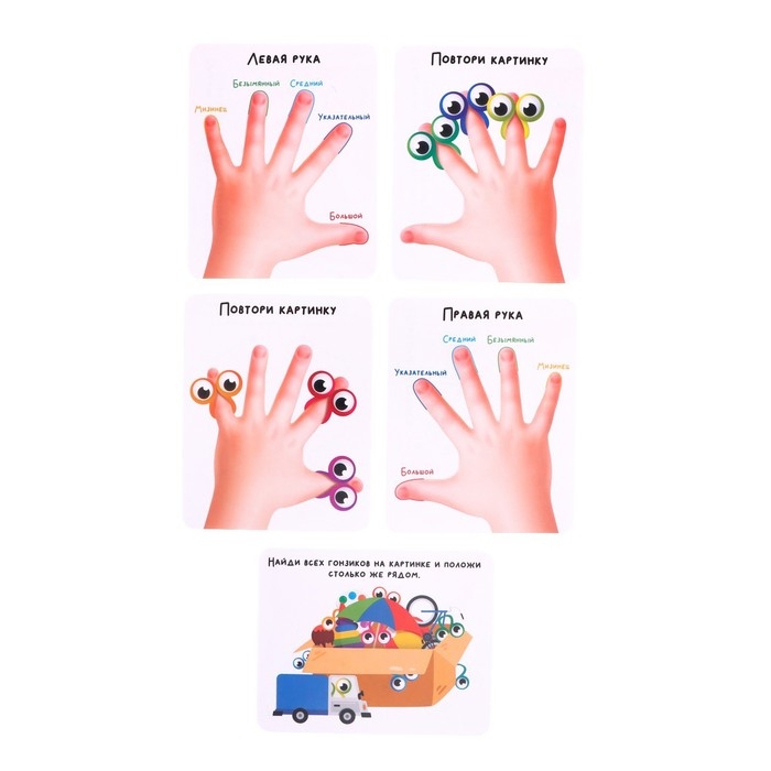 С набором «Умные гонзики» ребёнок в игровой форме запомнит названия пальчиков, потренирует мелкую моторику, логическое мышление, память и расширит кругозор.