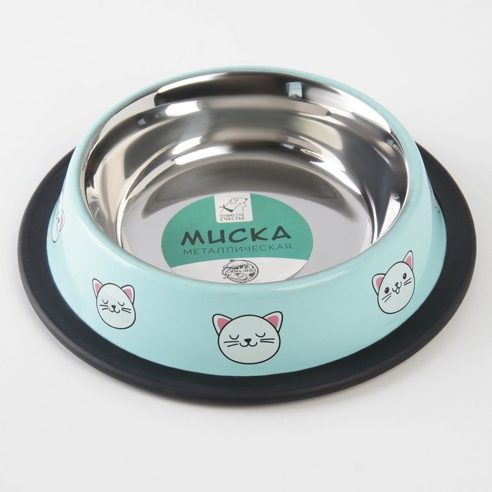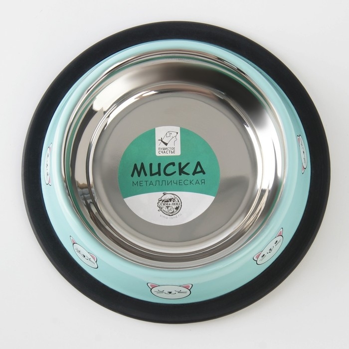Миска для кошек сделана из нержавеющей стали, её легко мыть, она долговечна, подходит для еды и воды. Изделие имеет нескользящую резинку по окружности дна — ёмкость не будет скользить и перемещаться во время приёма пищи.