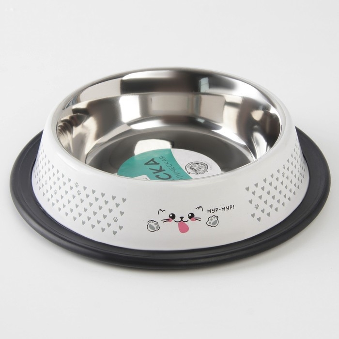 Миска металлическая для кошки с нескользящим основанием «Мур-мур!», 235 мл, 15х3.5 см