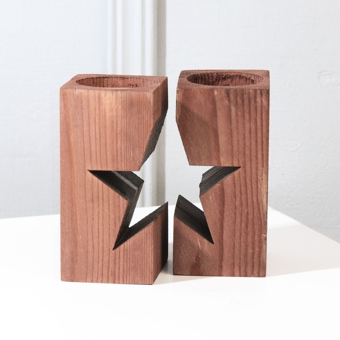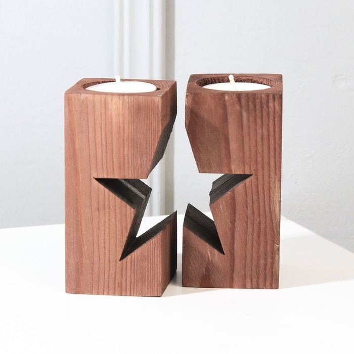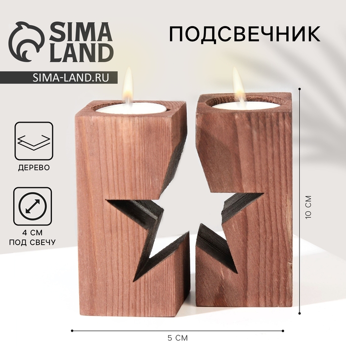 Подсвечник новогодний деревянный «Новый год: Звездная ночь», диам. под свечу = 4 см., 9,5 х 5,5 х 10 см.