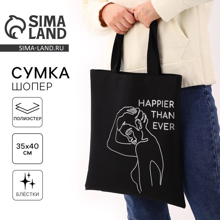 Шопер «Силуэт» блёстки, без молнии, без подклада, цвет чёрный