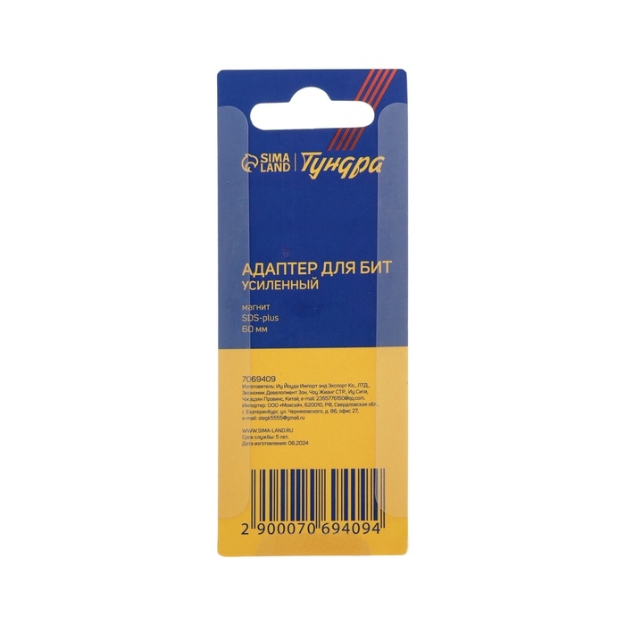 Адаптер для бит ТУНДРА, с магнитом, усиленный, хвостовик SDS-plus, 60 мм