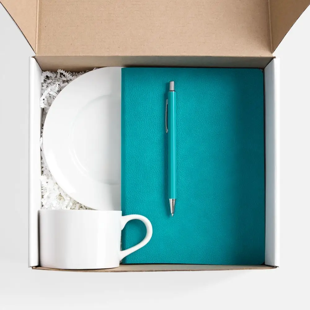 О работе не позволит забыть офисная классика — ежедневник и ручка — в оригинальном исполнении, а перерыв всегда приятно провести за чашечкой любимого напитка с не менее любимыми коллегами.