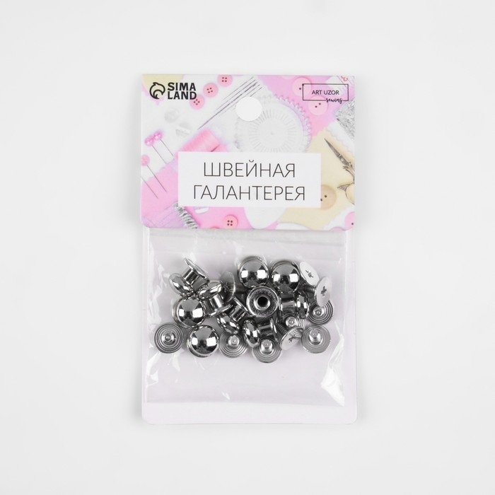 В наборе 10 штук серебряного цвета. Диаметр шляпки 8 мм; диаметр основания 8 мм; высота 10 мм.