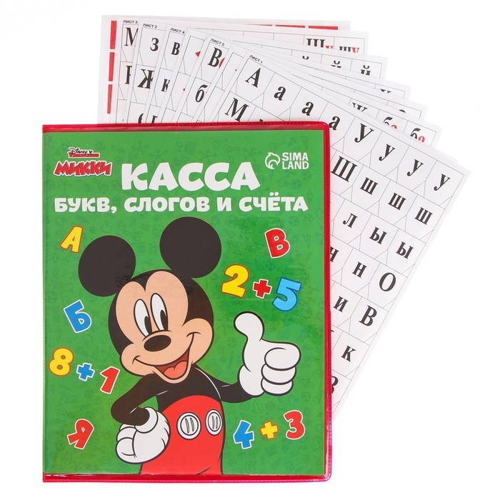 Касса букв, слогов и счета «Учим буквы и цифры», А5, ПВХ, Микки Маус цвет МИКС