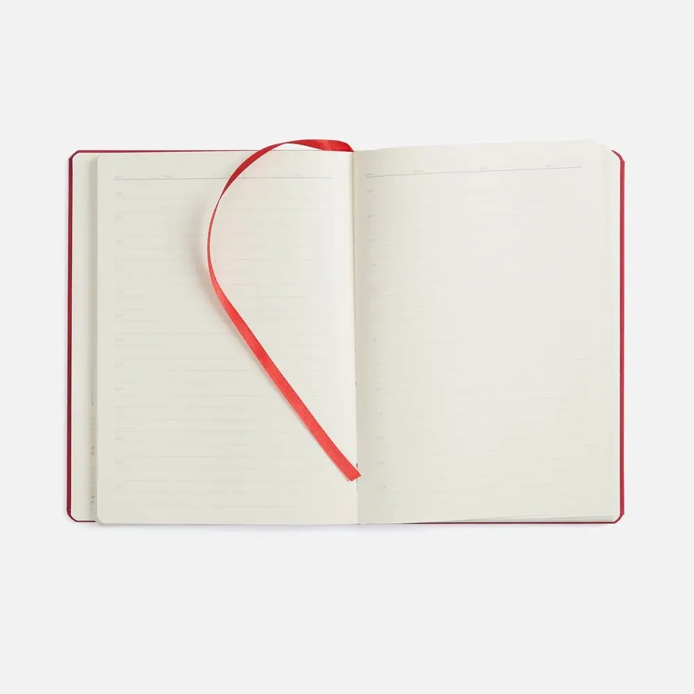 Ежедневник с твердой обложкой, выполнен из материала Nubuck Touch, красный PP, дополнен ляссе в цвет обложки.