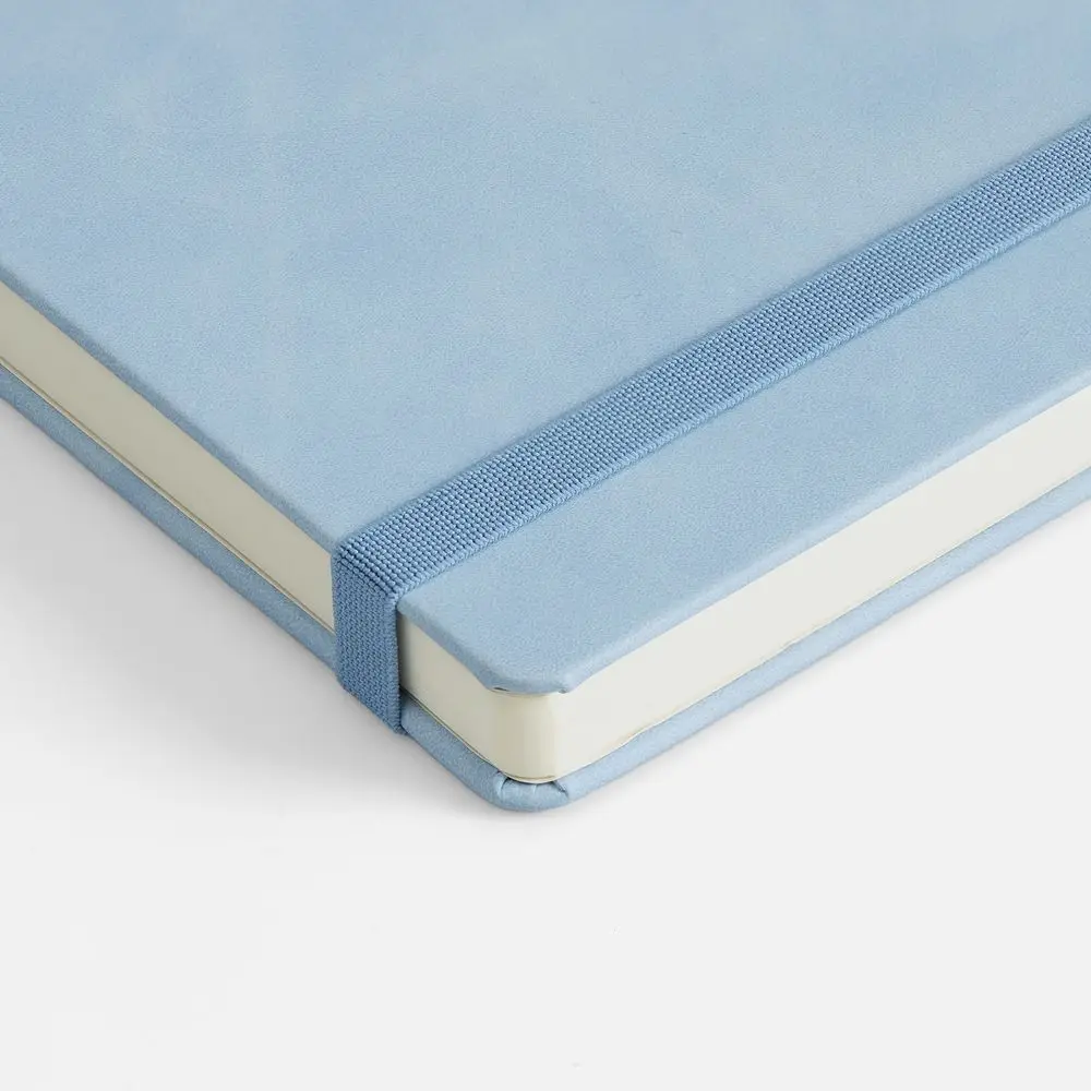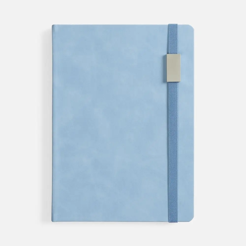 Ежедневник с твердой обложкой, выполнен из материала Nubuck Touch, голубой JJ, дополнен ляссе светло-голубого цвета.