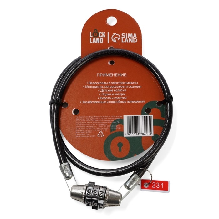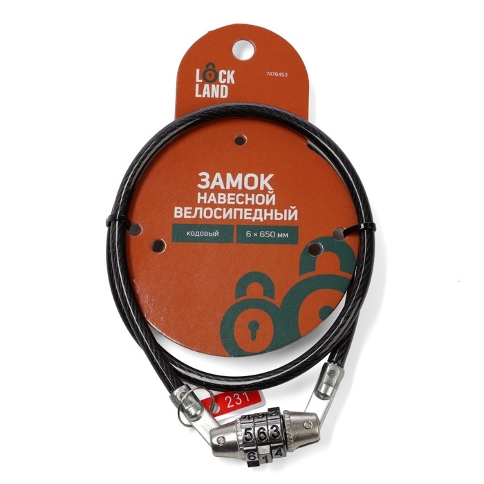Замок навесной велосипедный LOCKLAND, кодовый, 6х650 мм