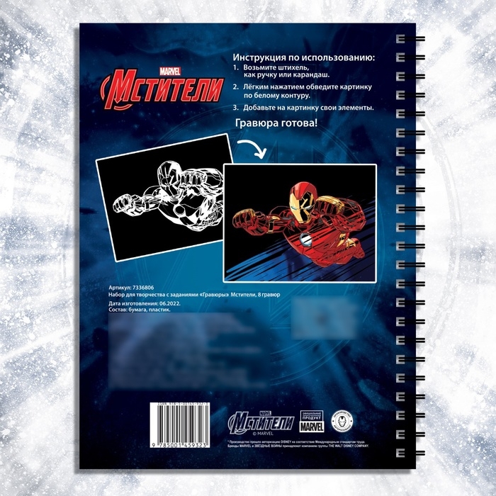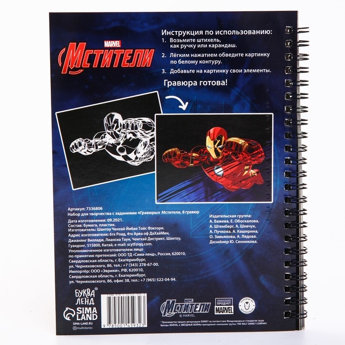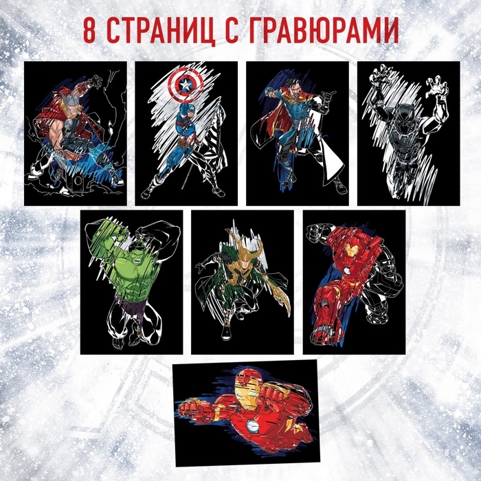 Набор для творчества с заданиями «Гравюры», цветной фон, 8 гравюр, Мстители