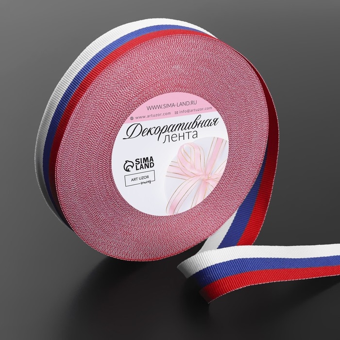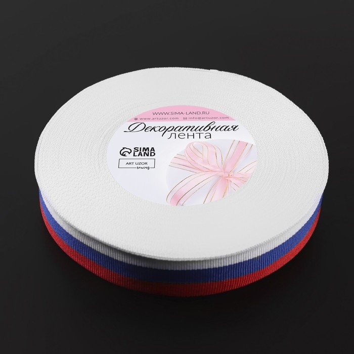 Лента репсовая «Триколор», двусторонняя, 20 мм, 23 ± 1 м