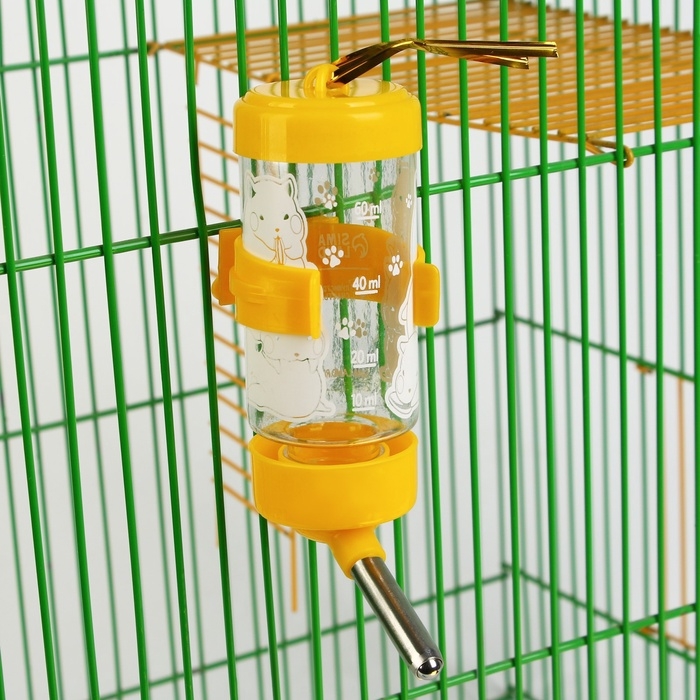 Поилка для грызунов, 60 мл, прозрачная с жёлтым креплением