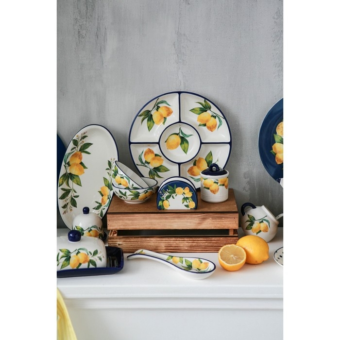 Посуда серии «Лимоны» от торговой марки Доляна изготовлена из качественного доломита. Благодаря оригинальному дизайну, изделия гармонично дополнят сервировку стола, а также прекрасно подойдут в качестве подарка. Посуда выполнена в ярких тонах, что позволит вписать её практически в любой интерьер.