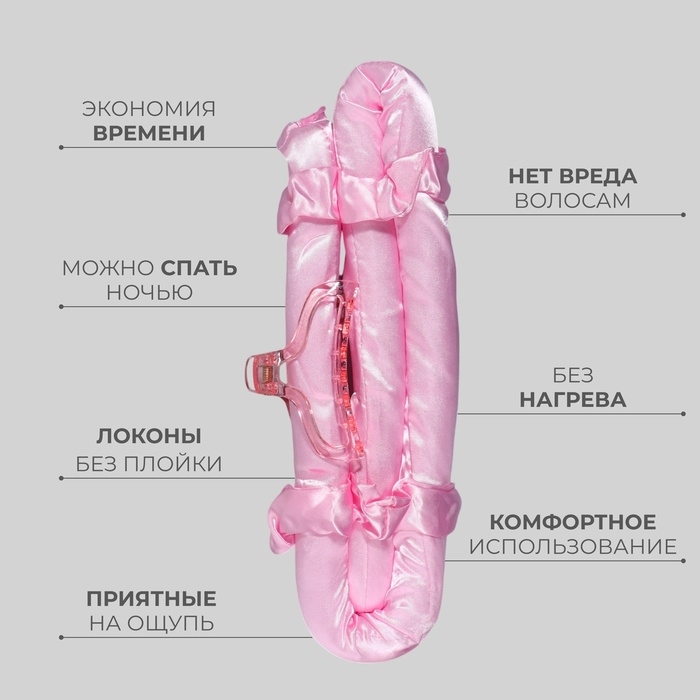 Набор для завивки «Волшебный локон», 4 предмета: бигуди, резинки - 2 шт, крабик, цвет розовый