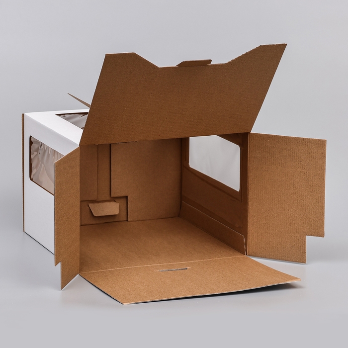Коробка под торт 2 окна, с ручками, белая, 28 х 28 х 20 см