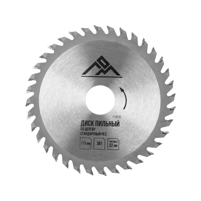 Диск пильный по дереву ЛОМ, стандартный рез, 115 х 22 мм, 36 зубьев