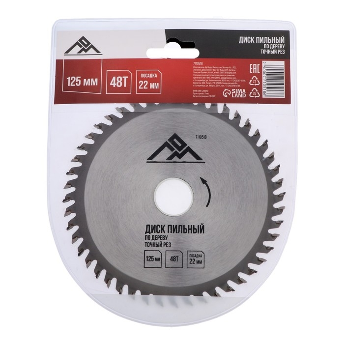Диск пильный по дереву ЛОМ, точный рез, 125 х 22 мм, 48 зубьев