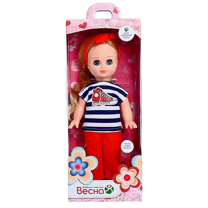- При нажатии на звуковое устройство, встроенное в спинку, кукла произносит фразы. Список озвученных фраз может варьироваться.