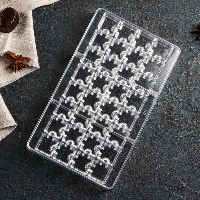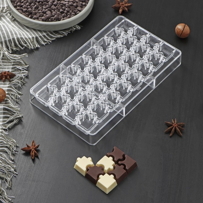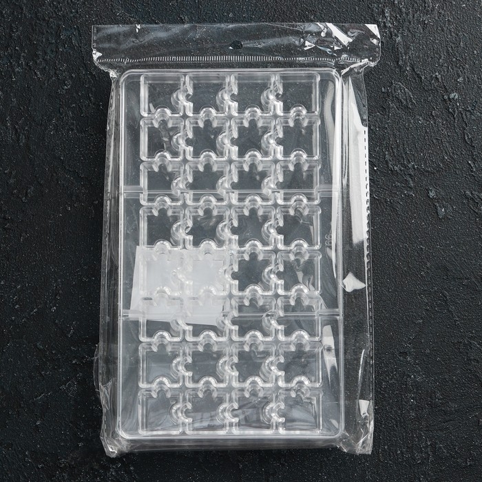 Форма для конфет и шоколада «Пазлы», 20×12×2,5 см, 32 ячейки 2×2×0,8 см, цвет прозрачный