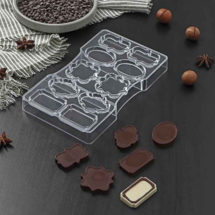 Форма для конфет и шоколада «Рамочка», 10 ячеек, 20×12×2,5 см, цвет прозрачный