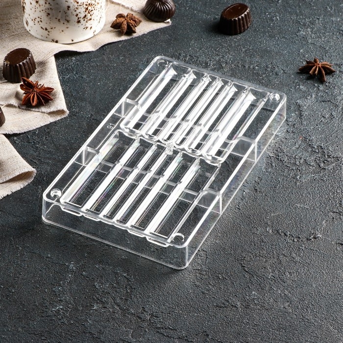 Форма для шоколада «Стикс», 20×12×2,5 см, 12 ячеек 9×1,5/1/0,8 см, цвет прозрачный