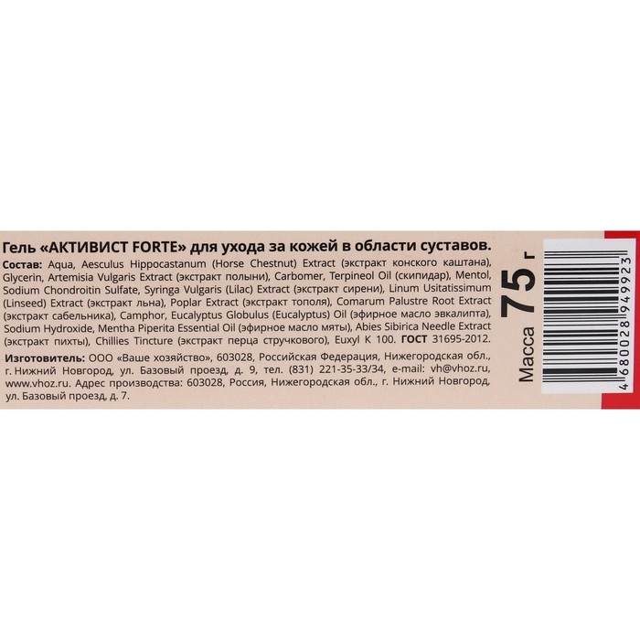 Гель от боли в суставах Активист Forte, 75 г