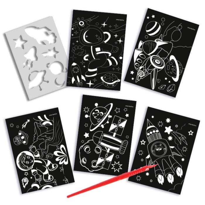 Гравюра блокнот детский «Удивительный космос», 10 листов, штихель