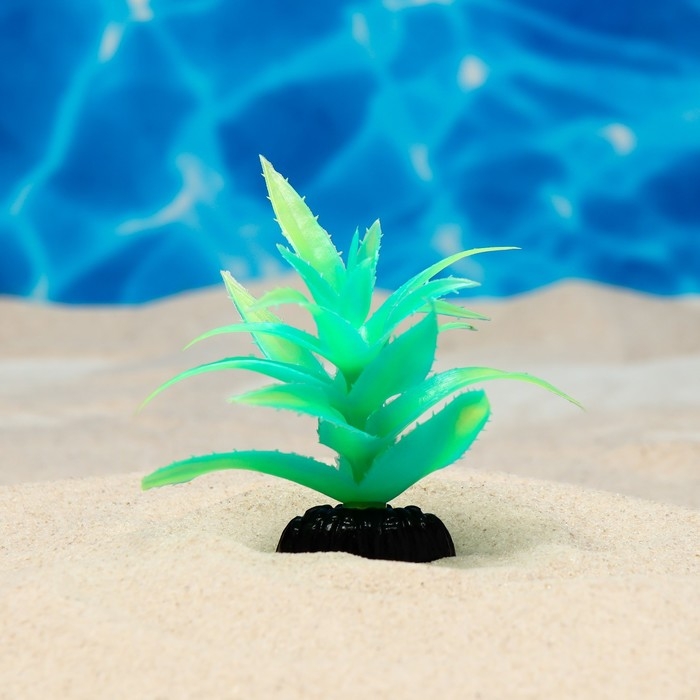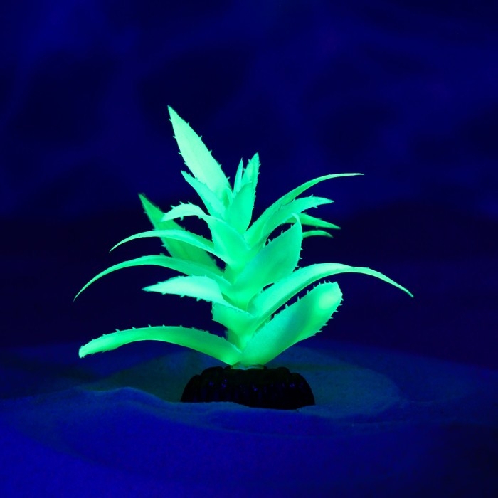 Растение искусственное аквариумное, светящееся, 10 см, зелёное