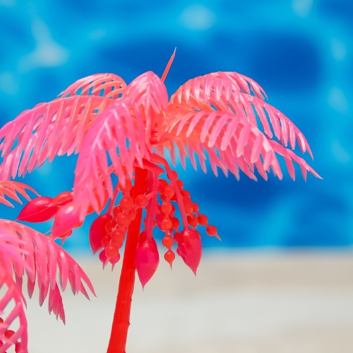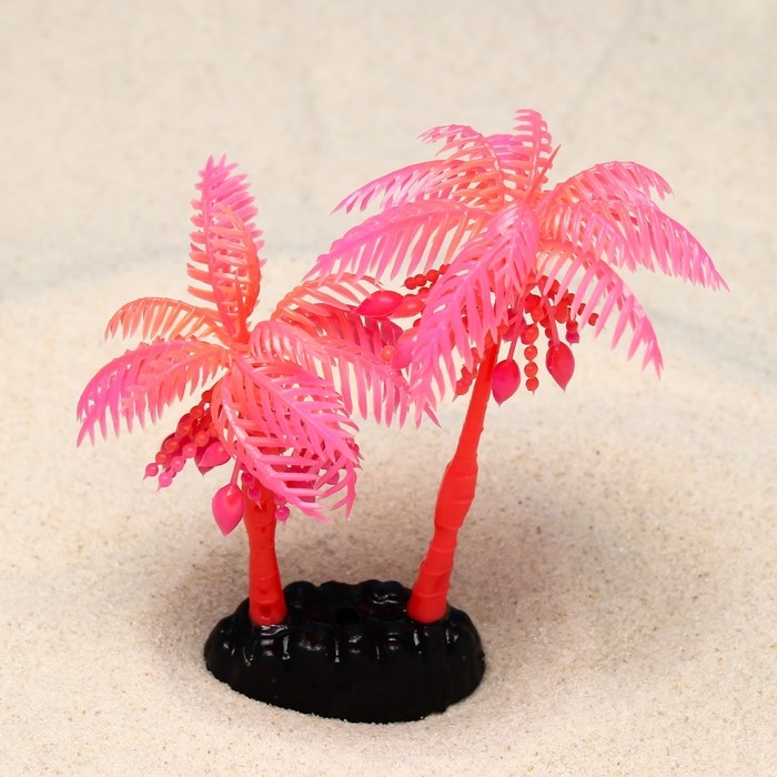 Растение искусственное аквариумное "Пальма", светящееся, 10 см, красное