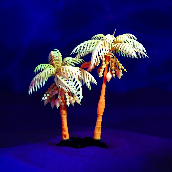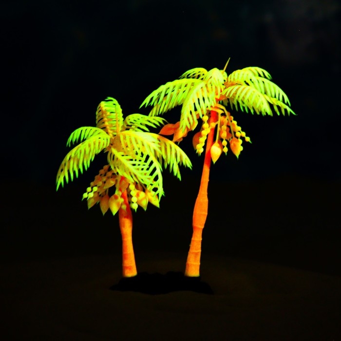 Растение искусственное аквариумное "Пальма", светящееся, 10 см, зелёное
