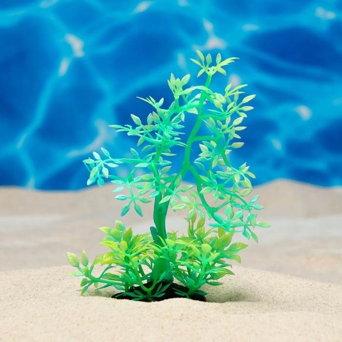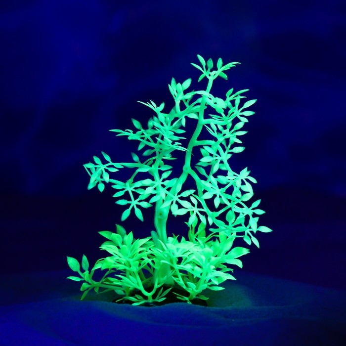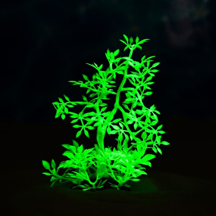 Растение искусственное аквариумное, светящееся, 10 см, зелёное