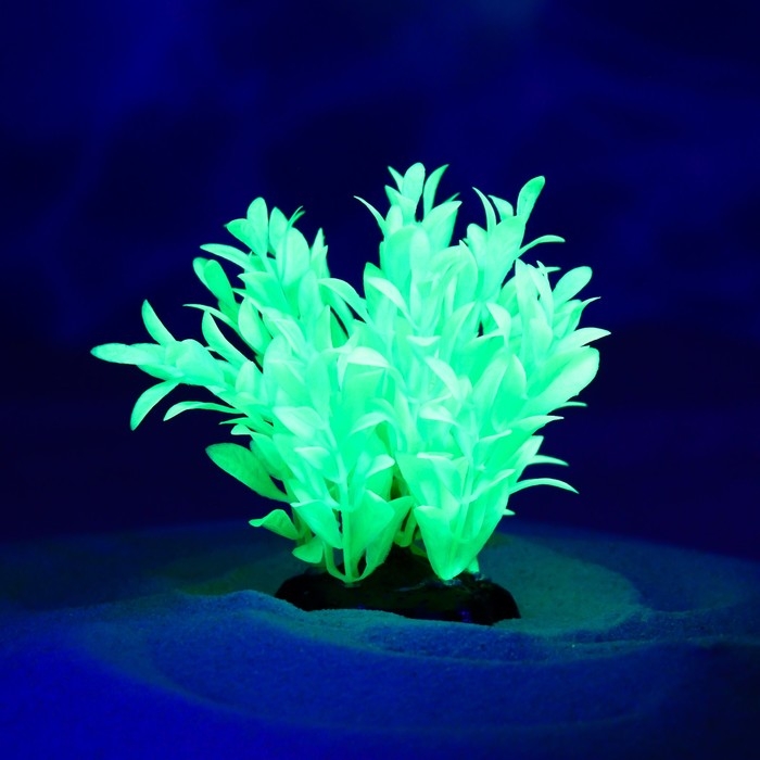 Растение искусственное аквариумное, светящееся, 10 см, зелёное