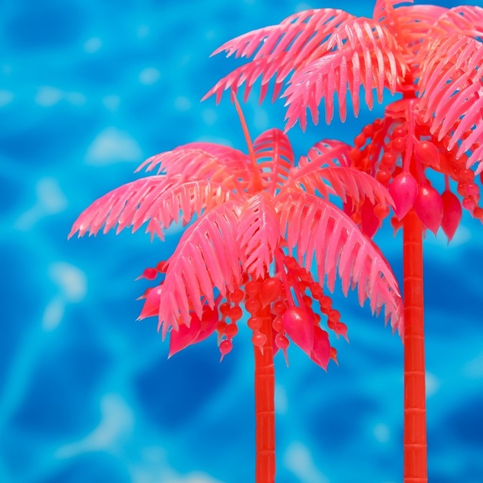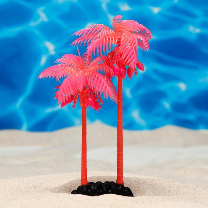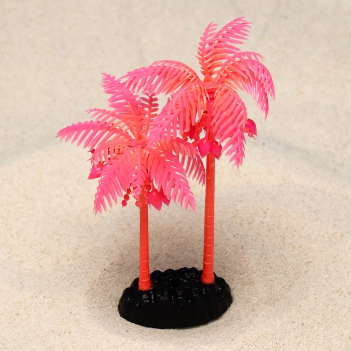 Растение искусственное аквариумное "Пальма", светящееся, 10 см, красное