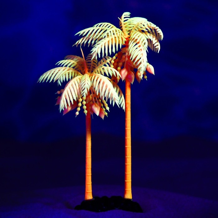 Растение искусственное аквариумное "Пальма", светящееся, 14 см, зелёное