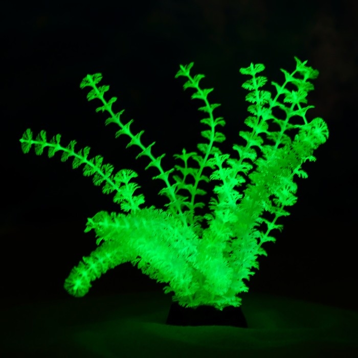 Растение искусственное аквариумное, светящееся, 18 см, зелёное