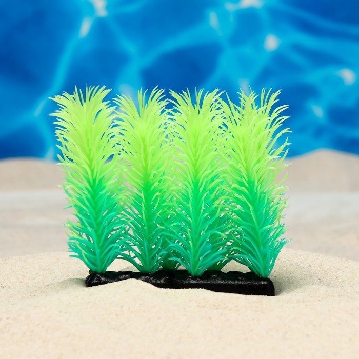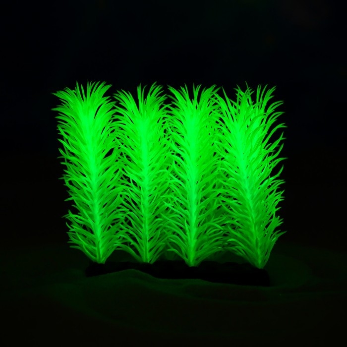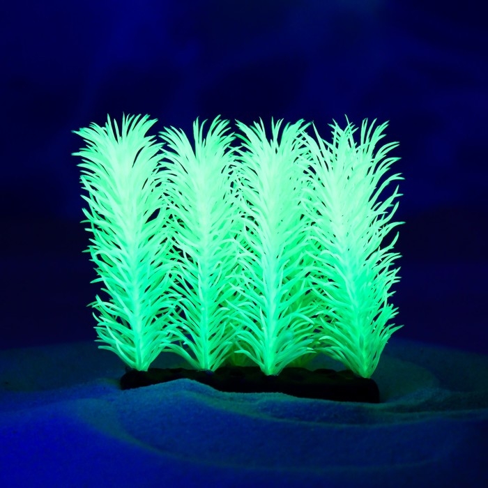 Растение искусственное аквариумное, светящееся, 10 см, зелёное