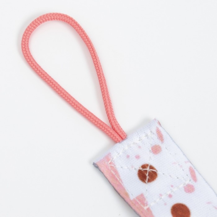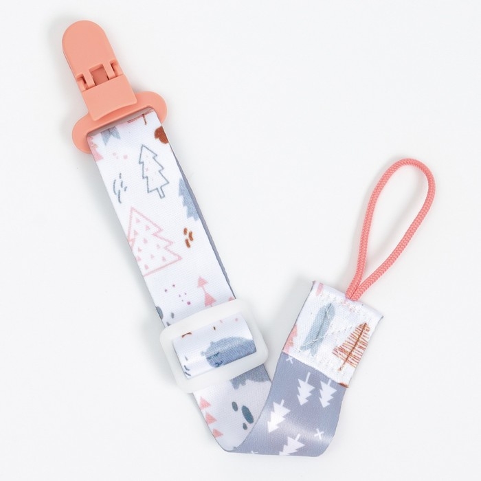 Изделие фиксируется на одежде ребёнка. На конце цепочки есть карабин, который зацепляется за кольцо пустышки. Надёжное крепление убережёт вещь от падения на пол, если малютка случайно выронит её изо рта.