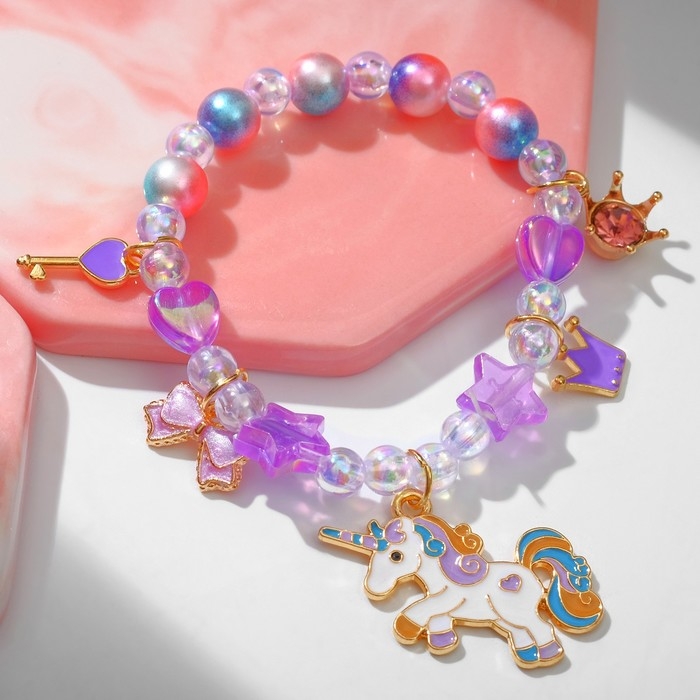 Браслет детский «Выбражулька» единорог, звёзды, цветной в золоте