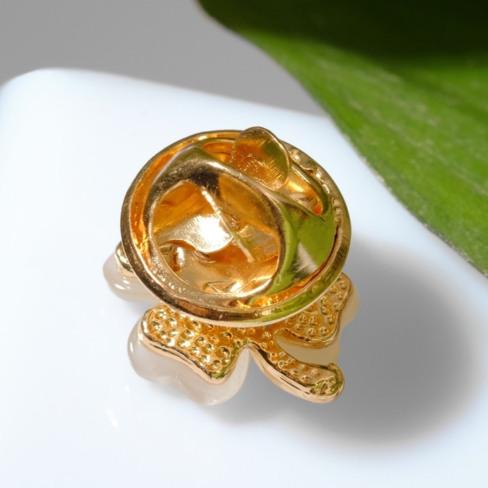 Значок "Клевер" четырёхлистный, цвет бежевый в золоте
