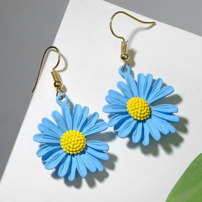 Серьги металл «Яркость» ромашки, цвет жёлто-синий