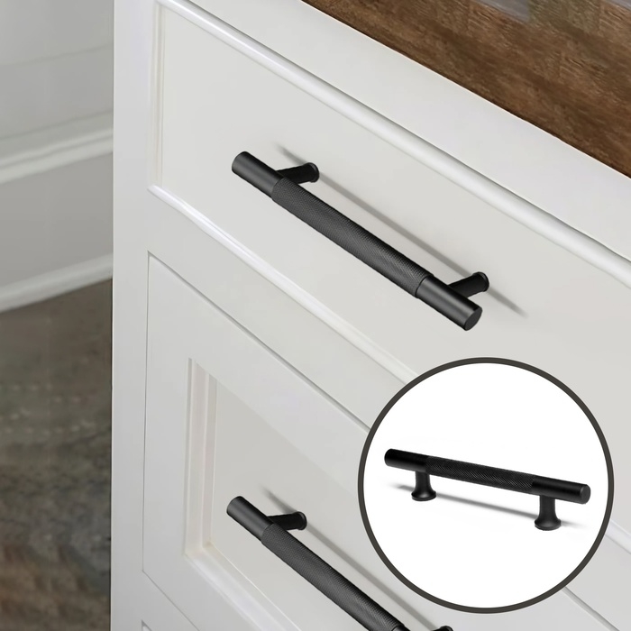 Интересный дизайн ручки сочетается с различными типами мебельного гарнитура. Фурнитура имеет привлекательный внешний вид и компактный размер. Черный оттенок идеально подходит к мебельным фасадам в различной цветовой гамме.