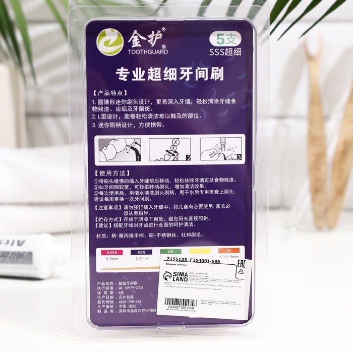 Ершики для брекетов и зубов, набор 5 шт., 0.7 мм