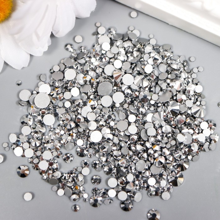 Декор для творчества стекло "Стразы усечённый конус. Серебристые" d=1,5-6,5 мм набор 1000 шт