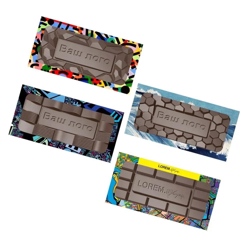 Окошко позволяет увидеть шоколад, не открывая коробку. Полноцветная печать упаковки выполняется по вашему дизайн-макету.