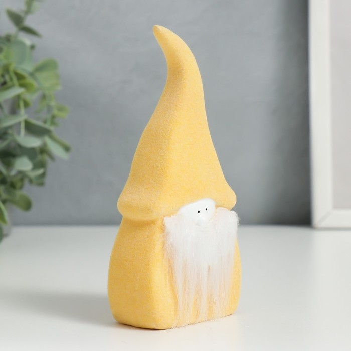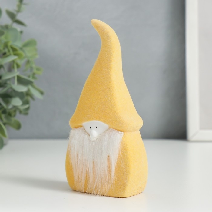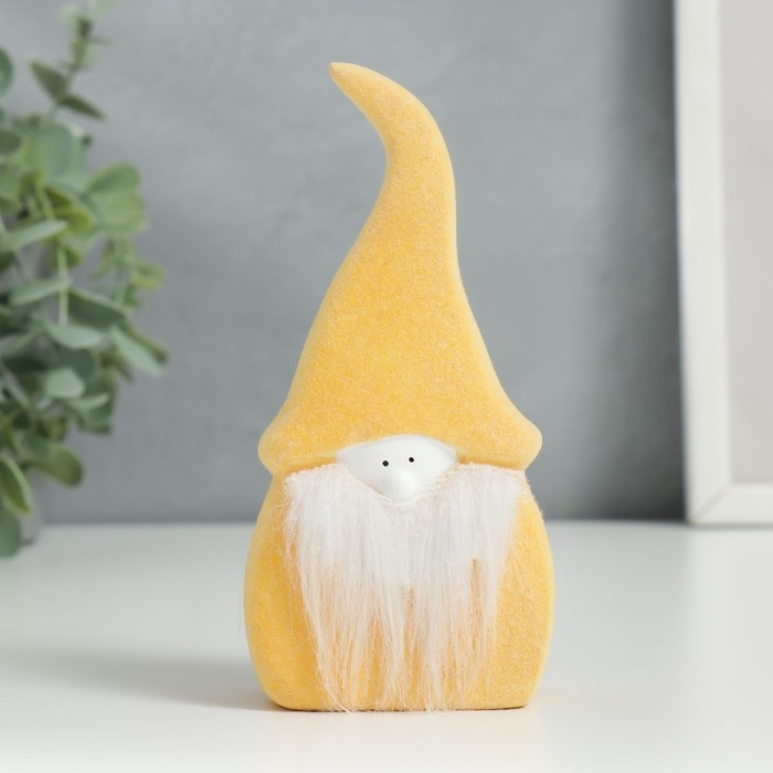 Сувенир керамика "Пухлый гном" жёлтый флок 12,2х2,9х5,7 см