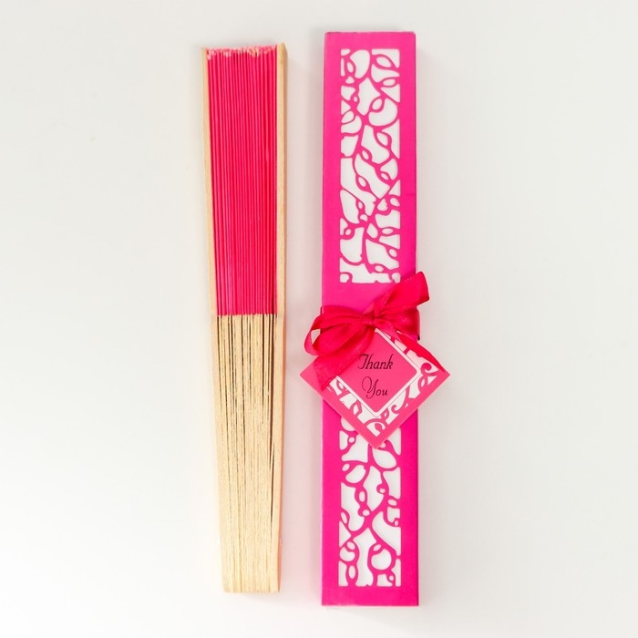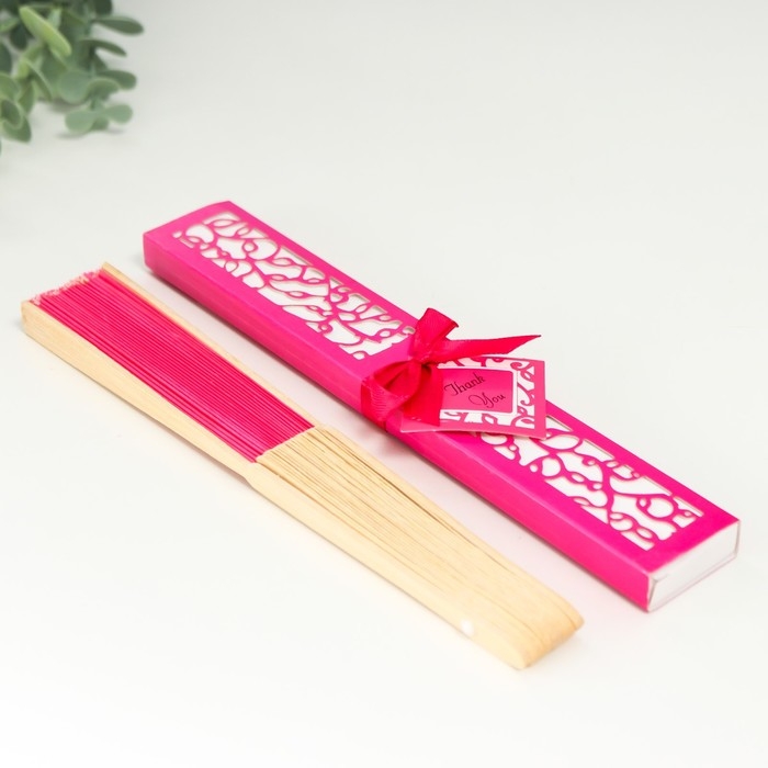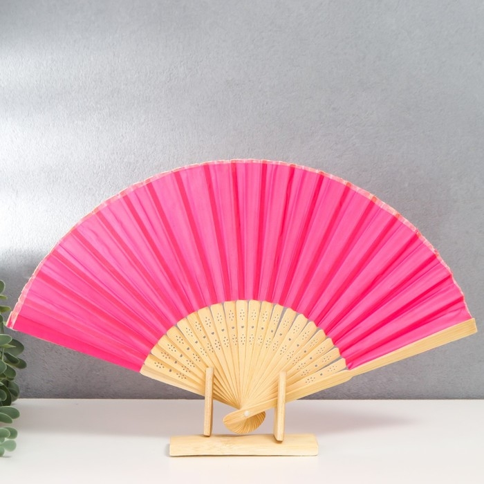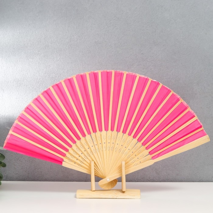 Веер бамбук, текстиль h=22 см "Моноцвет" в коробке, фуксия
