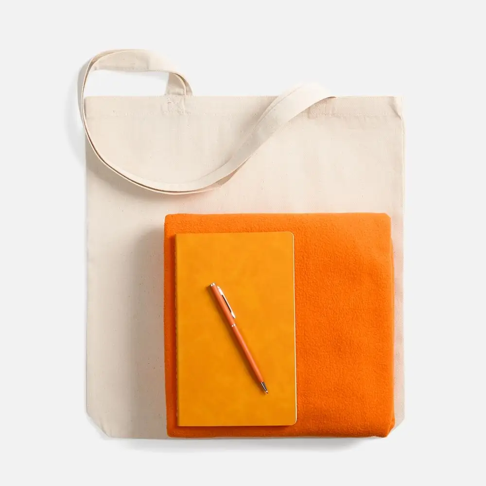 Набор с основной канцелярией и пледом — классика жанра в уютном исполнении. С компактным блокнотом под рукой будет удобно делать заметки в любое время, а легкий флисовый плед позволит выразить самые теплые пожелания.