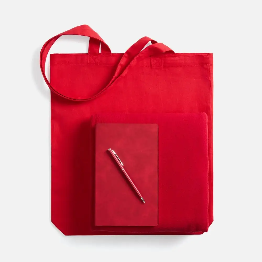Набор с основной канцелярией и пледом — классика жанра в уютном исполнении. С компактным блокнотом под рукой будет удобно делать заметки в любое время, а легкий флисовый плед позволит выразить самые теплые пожелания.
